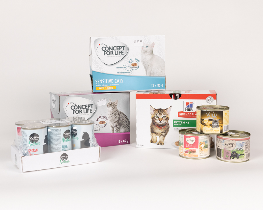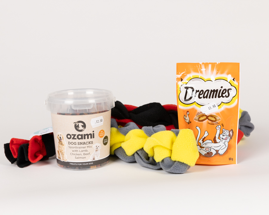Lintsin-Baanalta löytyy myös lemmikeille ruokaa ja herkkuja. Tarjolla muutamia eri vaihtoehtoja niin kissoille kuin koirillekin.